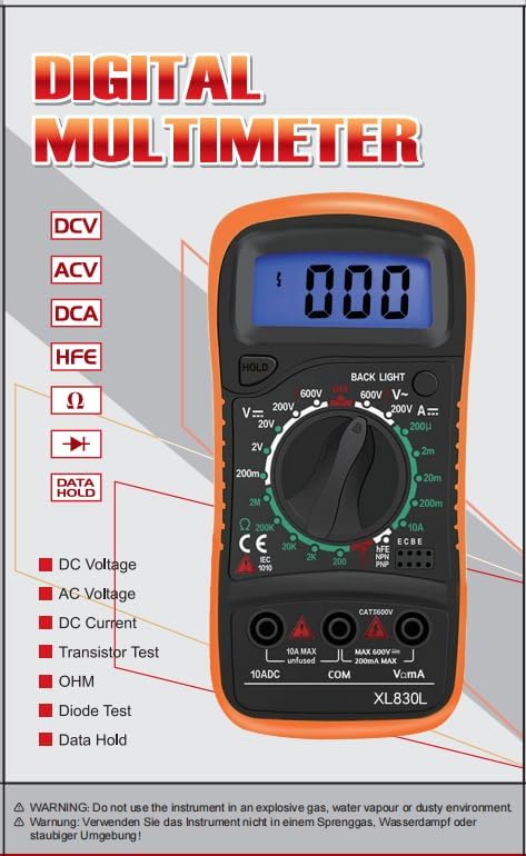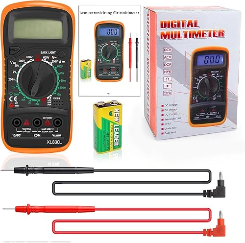 Digital Multimeter Voltmeter Batterietester Spannungsprüfer Durchgangsprüfer Ohm Volt Ampere Messgerät AC/DC Spannung Strom Widerstand Diode Transistor, Großes LCD Anzeige und Hintergrundlicht