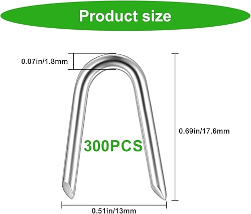 300 Stück Krampen U Nägel, U-Typ Stahlkrampen, Zaunklammern Krampen, Verzinkte U Nägel, Wand Krampen, U Klammer Nägel Befestigungsnägel für Netze, Maschendraht, Gewebte Zäune
