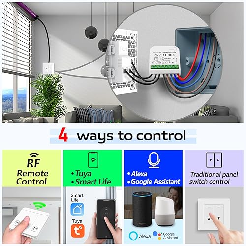 Tedeligo Drahtloses RF WIFI Alexa Smart Rolladenschalter Modul Für Elektrische Rolläden Vorhänge, Jalousien Und Markisen Zeitschaltuhr Schalter Rolladenzeitschaltuhr Timer Für Rolladenmotor