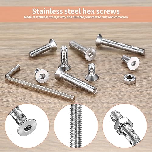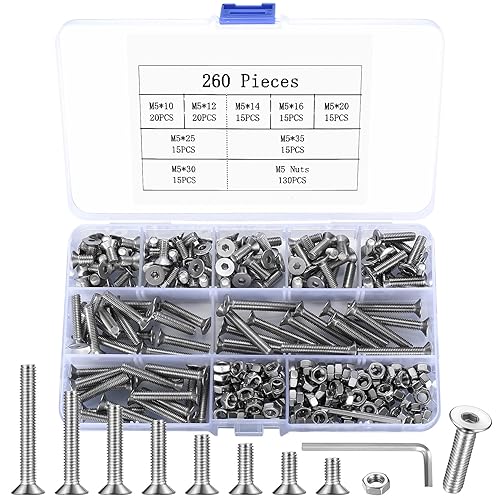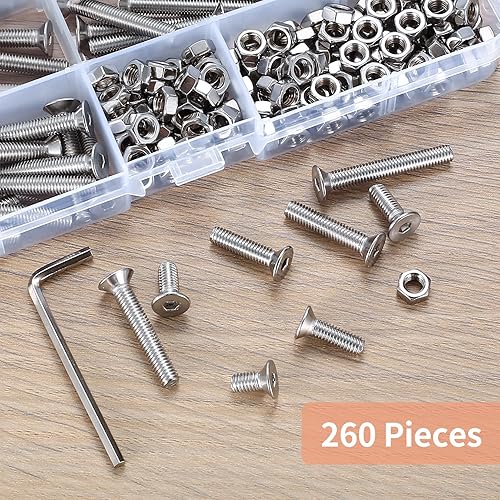 260 Stück M5 Schrauben Set, Senkkopfschrauben Muttern Set, Innensechskantschrauben und Muttern Set, Edelstahl Maschinenschrauben Set, Zylinderschrauben mit Muttern Sortiment Kit, Gewindeschrauben (M5)