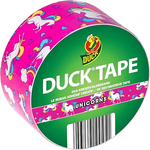 DUCK TAPE 100-45 Gewebeband Einhorn – Buntes Paketklebeband mit Einhorn-Muster – Panzertape zum Dekorieren, Basteln & Verschönern – 48mm x 9,1m