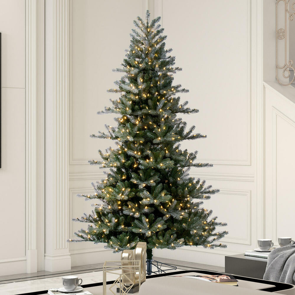 Vickerman 7.5' x 56" Frosted Danbury Spruce Artificial Pre-Lit Christmas Tree Warm White Lights.