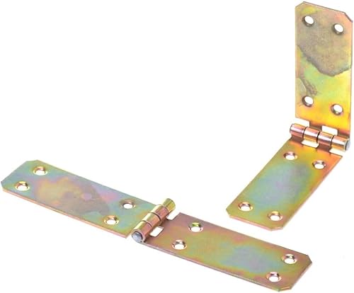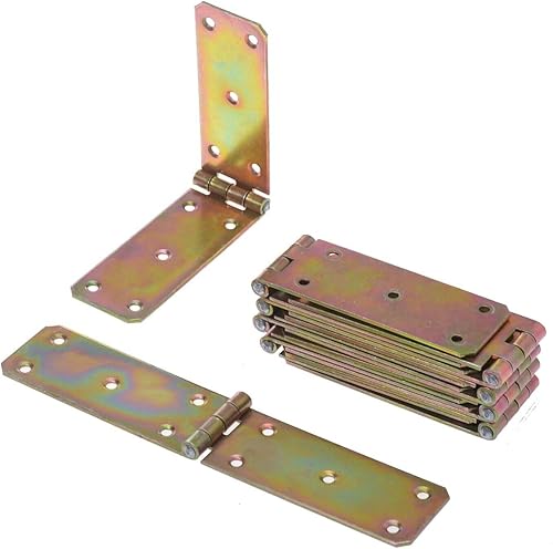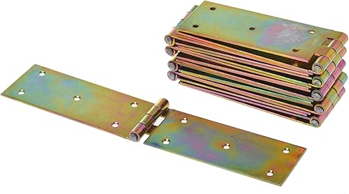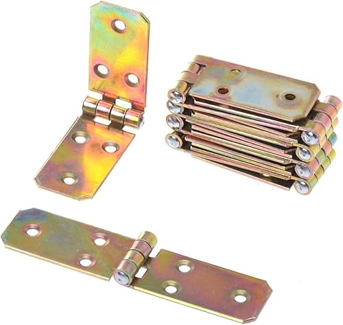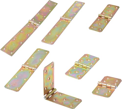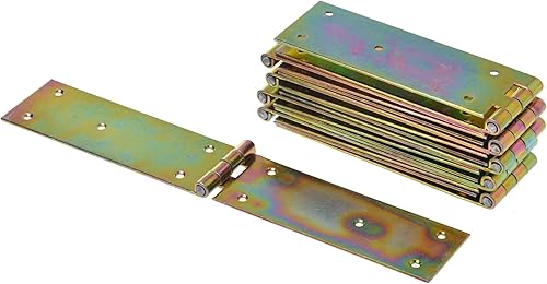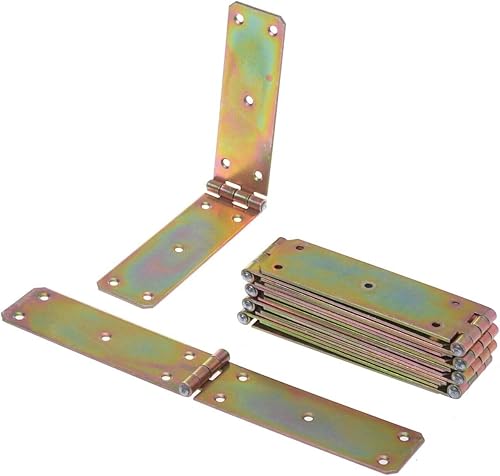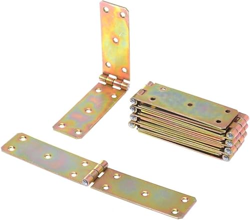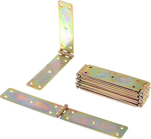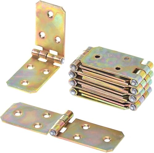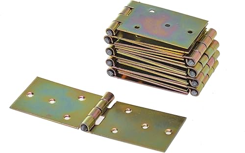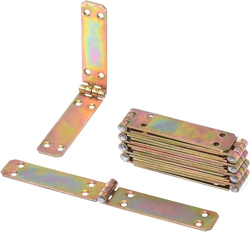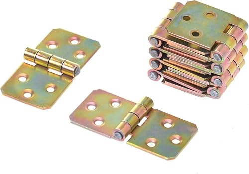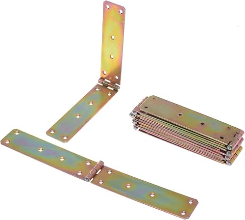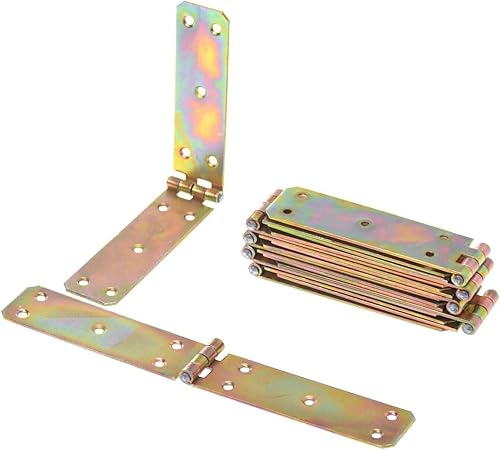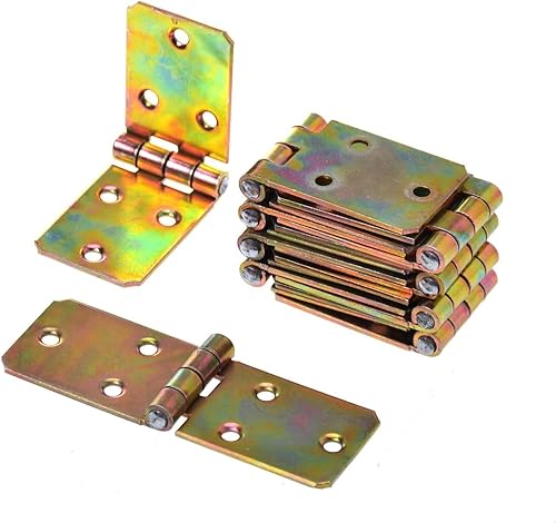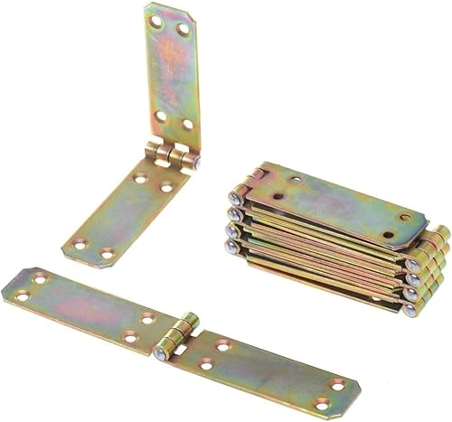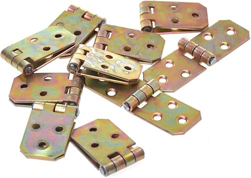 Aqbau® Set 10 tlg. Kistenband scharnier, Kistenbänder, Tischband, Tischbänder, Gerollte, scharniere klappbar, scharnierbänder, Gelb verzinkt (100 x 50 mm)