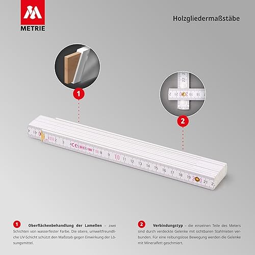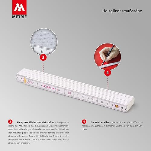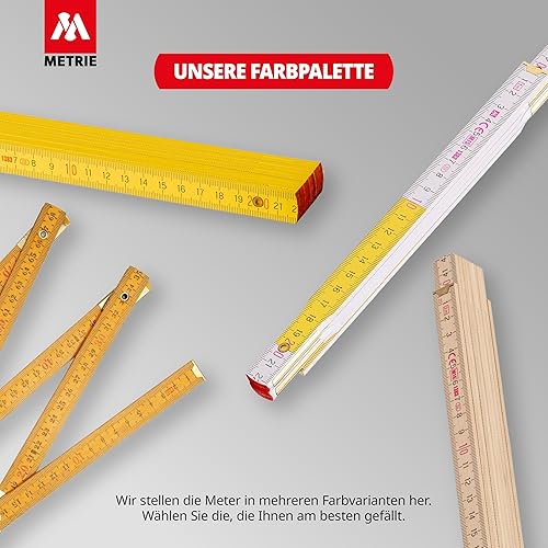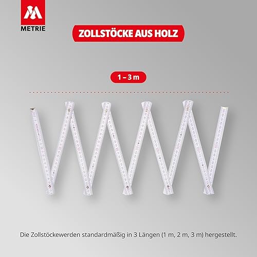 Metrie BLOCK72 Holz Zollstock/Zollstöcke 10x Stück|2m langer Gliedermaßstab, Meterstab mit Duplex-Teilung - Weiß, Hergestellt in der EU