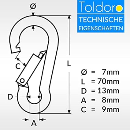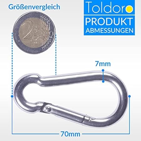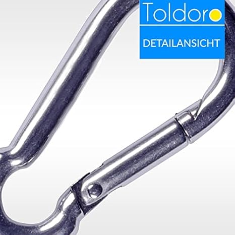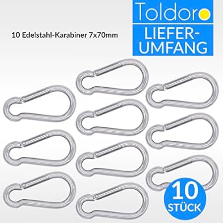 Toldoro Edelstahl Karabiner 70mm Rostfrei - NIRO AISI 316 V4A / Karabinerhaken für Schaukel, Camping oder Slacklines/Feuerwehrkarabiner/Karabiner Set