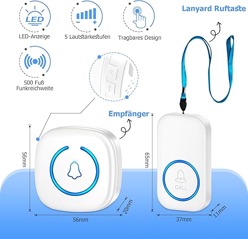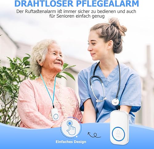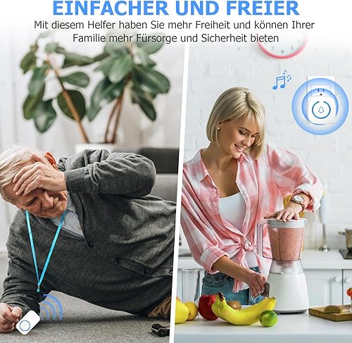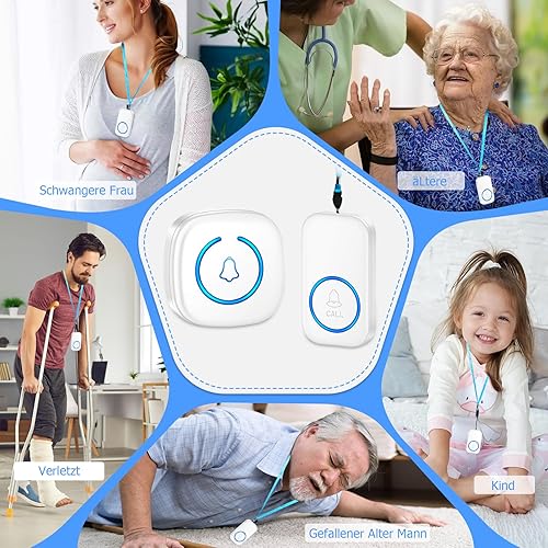 Notrufknopf für Senioren - Hausnotruf Senioren, Hausnotruf für Senioren SOS Alarm Notruf Knopf mit Vibration, Licht und Klingelton (1 Sender + 1 Empfänger)