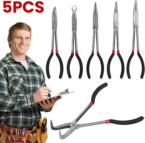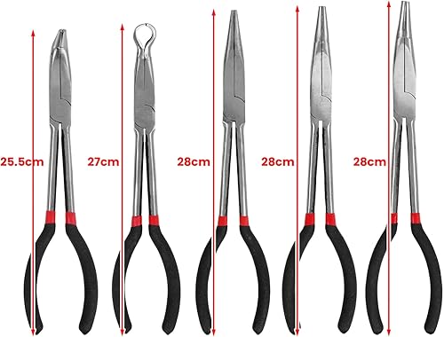 5tlg Lange Spitzzange Set, Zange Satz Spitzzange Telefonzange Rundnasenzange Auto Lang Zangensatz 11'/180mm