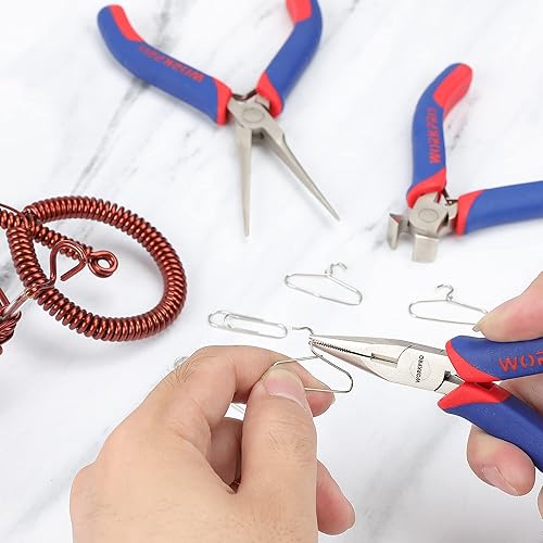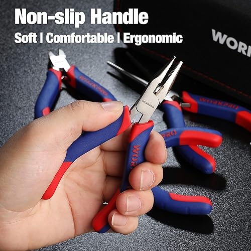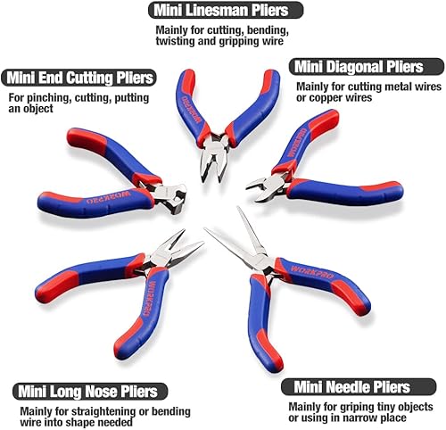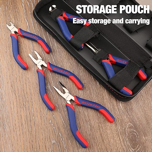 WORKPRO Mini-Zangen-Set, Schmuckzangen, 5-teilig, inkl. Linesman-Zange, Spitzzange, Seitenschneider, Spitzzange mit Organizer-Tasche