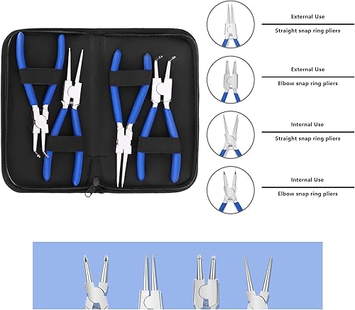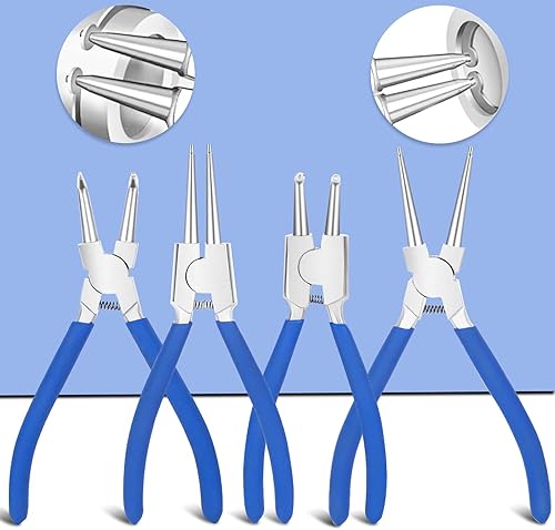 4tlg Sprengringzangen, Seegering-Zangen Seegeringzange Set Sicherungsringzange Professionelle 7 Zoll Mit tauchbeschichteten Griffen für Außen und Innensicherungsringe