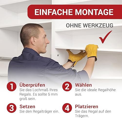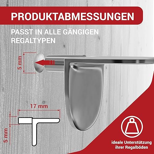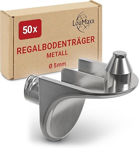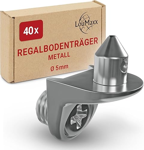 LouMaxx Winkelbodenträger mit Zapfen und Schraube - 40er Set Regalbodenträger - Sicherheits Bodenträger 5mm - Einlegeboden Halter aus Zamak vernickelt