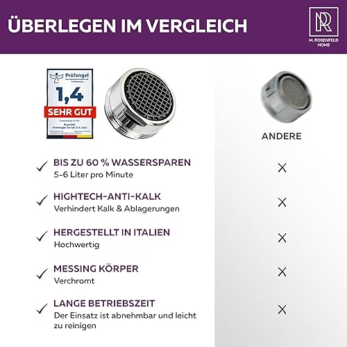 Strahlregler Wasserhahn Aufsatz Küche & Bad M24 Wassersparen 5 l/min - High Tech Anti Kalk Wasserhahn Sieb mit Kugelförmige Filter - Luftsprudler aus Verchromten Messing