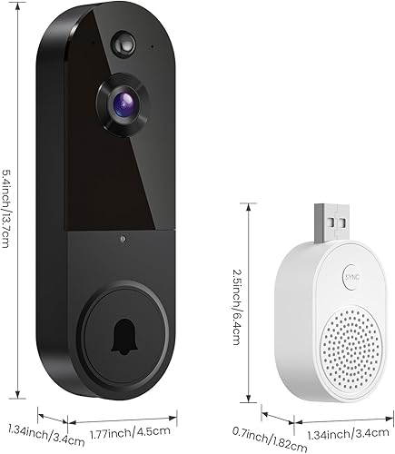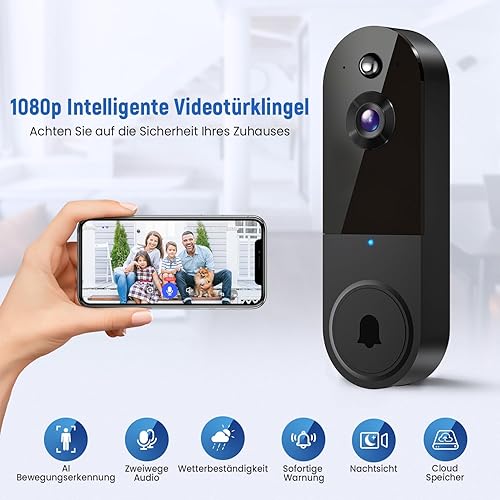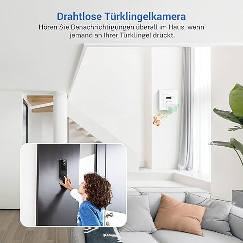 guggre Kabelloses Smarte Video-Türklingel, 1080p Kamera, Bewegungsmelder, Wetterfeste Türklingel mit Alarm, 2-Weg-Kommunikation, inkl. Halterung und Zubehör für erhöhte Familienhaus-Sicherheit