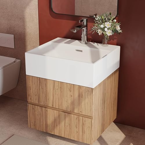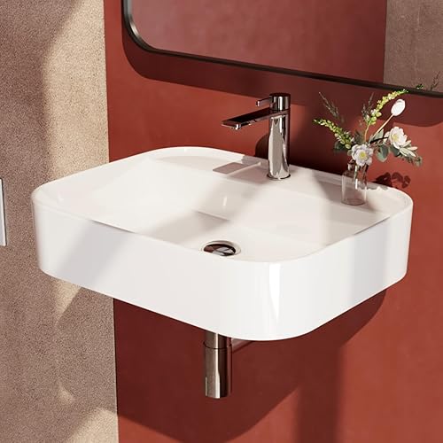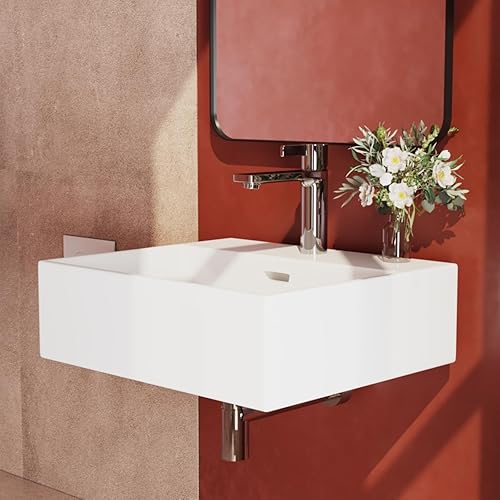 EMKE Waschbecken Eckiges Design Handwaschbecken, Hochwertige Keramik Hängewaschbecken mit dünnem Rand, Waschtisch Für Badezimmer Gäste-WC (415x360x130mm, Weiß)