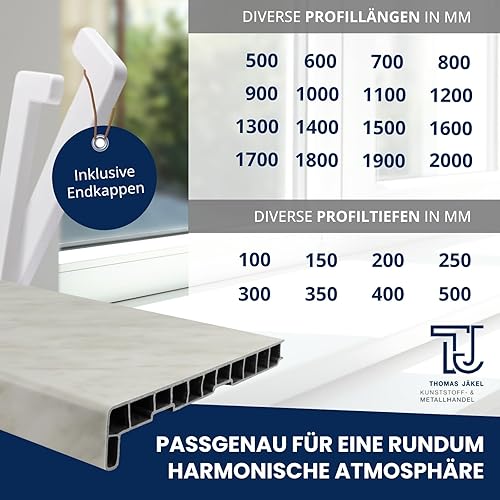 TJ Fensterbank Innen Kunststoff Marmoroptik / 20 x 200 cm Fensterbank inkl. Seitenabschluss/PVC Fensterbank nach Maß/Fensterbank Innen kratzfest und feuchtigkeitsundurchlässig