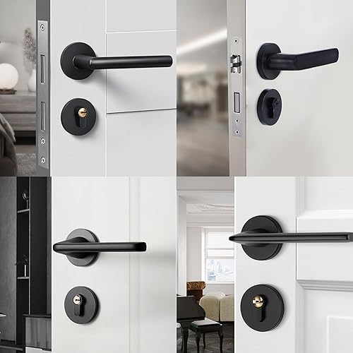 OHYER runde Edelstahl matt Rosette Türgriff Drückergarnitur Zylinderrosette matt oval rosette edelstahl schutzrosette für profilzylinder oval Schwarz Für Innen- und Außentüren Rundprofil-Zylinder (1#)