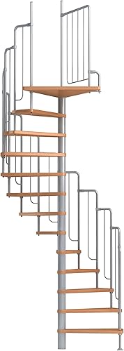 DOLLE Spindeltreppe Barcelona Höhe 229-291 cm Stufen Buche Unterkonstruktion weiß Durchmesser 138 cm