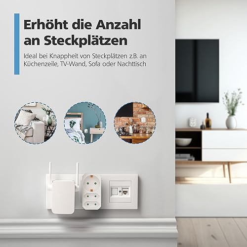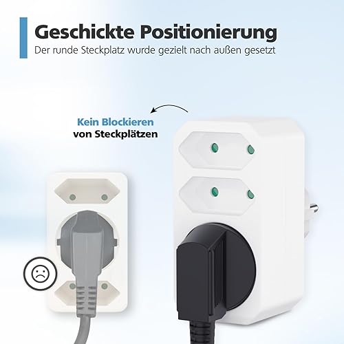 benon 2er Set Mehrfachstecker Weiß - Steckdosen-Adapter mit Kindersicherung - Doppelstecker 3680W - Multistecker 3Fach - Mehrfachsteckdose 2 Euro und 1 Schuko - Stecker mit Schutzkontakt Steckdose