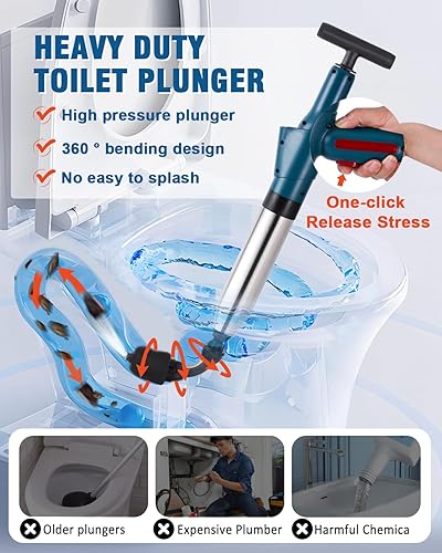 YUCHENGTECH Verbesserte Toiletten Pömpel Toilettenkolben WC Verstopfung Entfernen Hochdruck WC Pömpel 4 in 1 Toilet Plunger für Toilette/Waschbecken/Badewanne/Bodenablauf