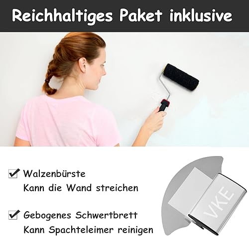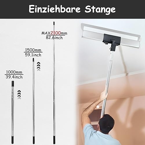 VKE (23PCs) Flächenspachtel Set im Koffer Profi mit Trockenbau, Spachtel Set Werkzeug mit Ergonomischem Griff, Teleskopstange zum Verputzen von Wänden und Decken 300/500/800 mm