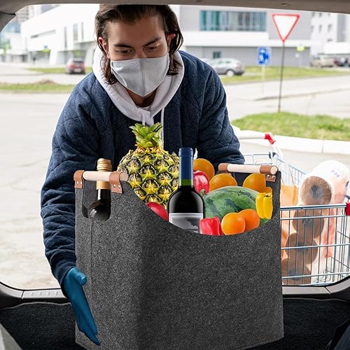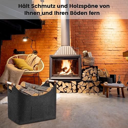 XXL Brennholzkorb 2 Stücke Filzkorb extra dicker Filz und verstärkter Griff | Faltbarer Holzkorb Filztasche als Aufbewahrungskorb für Einkauf, Holz, Zeitung oder Brennholz