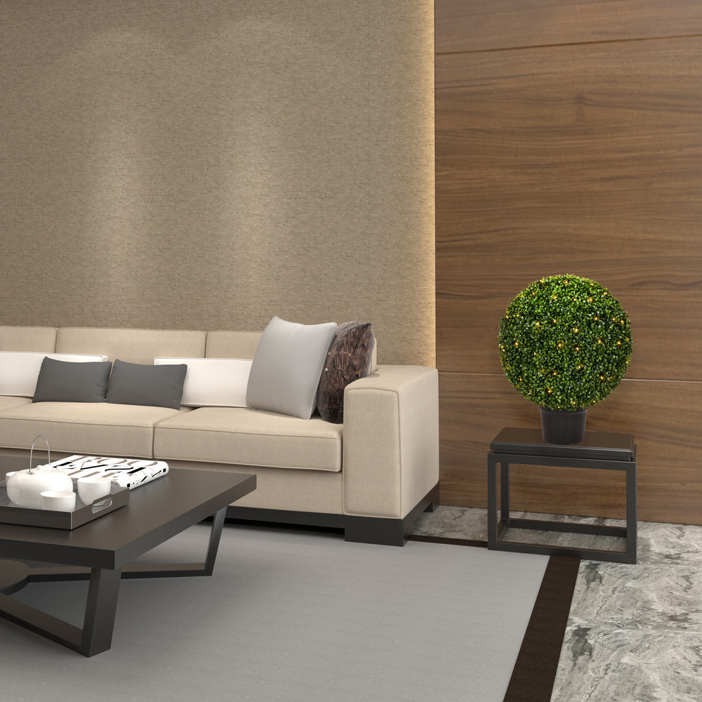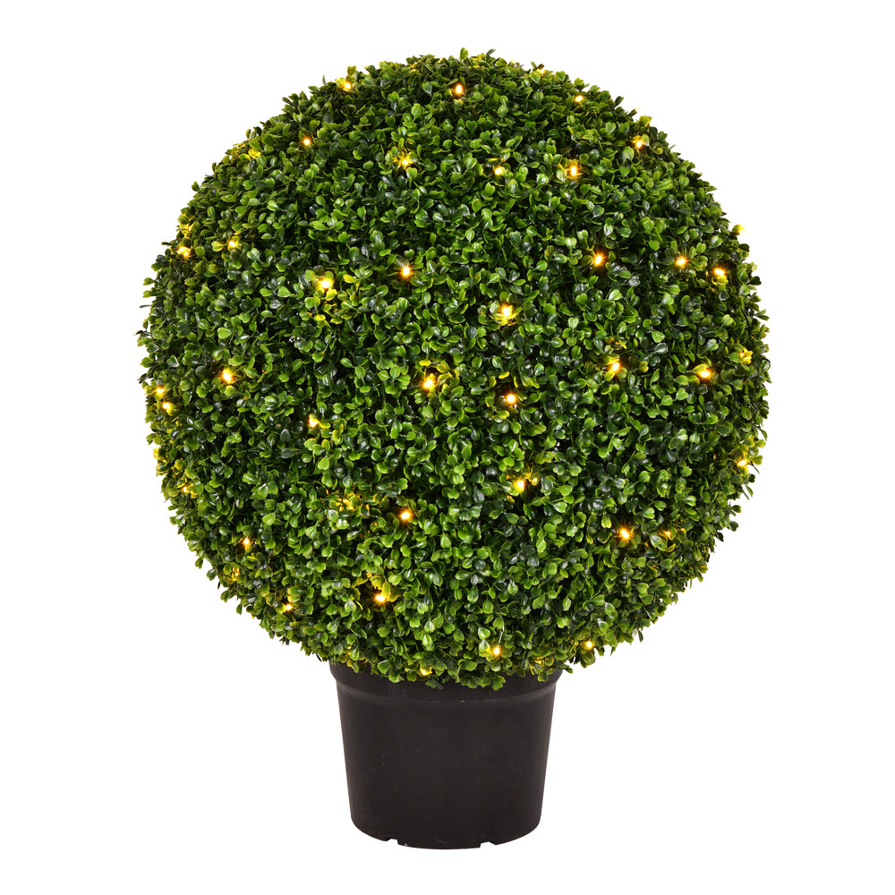 Vickerman 36" Artificial Boxwood Teardrop Shaped Bush Black Plastic Pot.