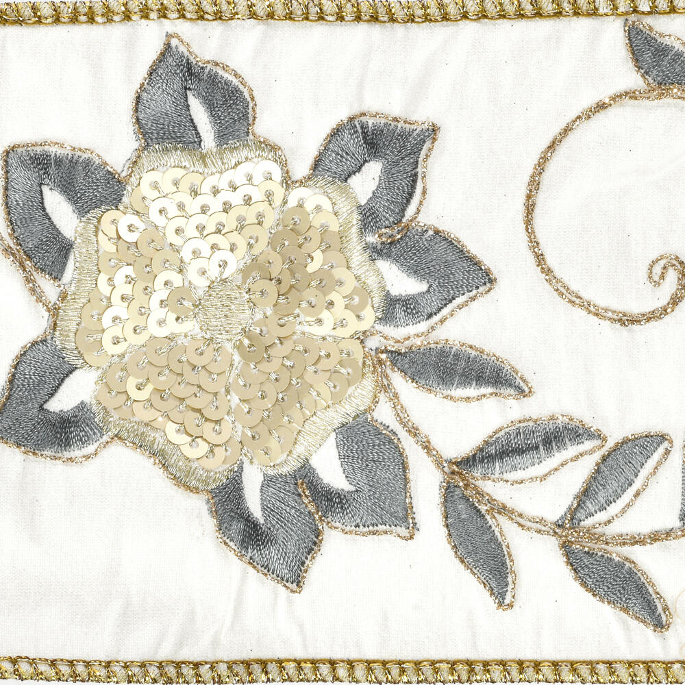 Vickerman 4" x 5 Yards Ivory Cord with Sequin Embroidered Dupion Ribbon