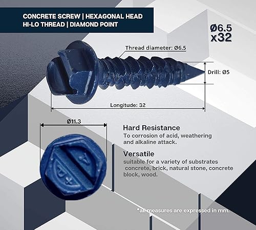 DOJA Industrial | Betonschrauben Torx 6,5mm X 32mm | PACK 20 | Rundkopf Spanplattenschrauben Schraube-Anker | Stahl Verzinkt Flachkopf Universalschrauben | Senkkopfschrauben/Holzschrauben Torx