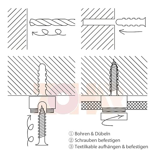 ZOHAR 3 Stück Zweiteilige Wand- und Deckenpins Weiß für Textilkabel Deckenbefestigung Affenschaukel Aufputz-Kabelhalter für Lampe DIY mit Schrauben und Dübeln