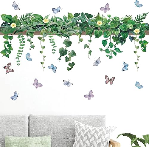 HPNIUB Grüne Blätter Wandtattoo,Modern Wandaufkleber Wohnzimmer,Grüne Pflanze Wandtattoo,Abnehmbar Hängende Rebe Wandbild,Frühling Wandsticker Aufkleber für Fenster Schlafzimmer Wanddeko (E, E)