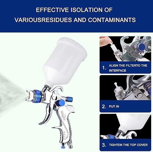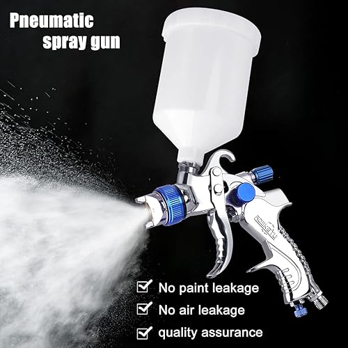 HVLP Lackierpistole Spritzpistole 3 Düsen 1,4mm 1,7mm 2,0mm Profi Farbsprühsystem Spraypistole mit 600 ml Plastikbecher Mit Luftdruckregler für Auto-Autodetail-Lackierung (Blau)