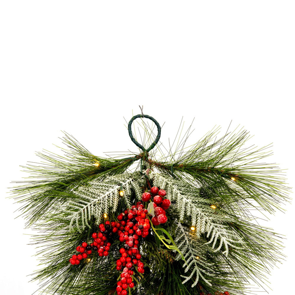 Vickerman 30" Frosted Artificial Christmas TearDrop with Red Berries Frosted Foliage and Battery Operated Lights