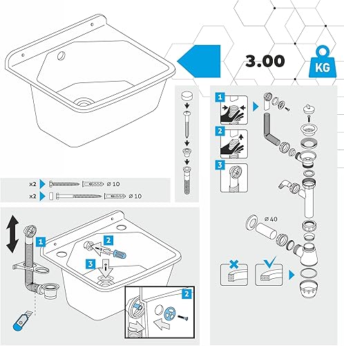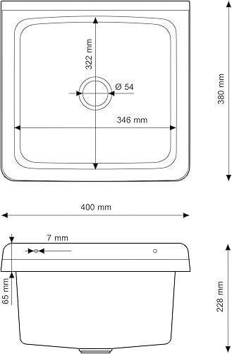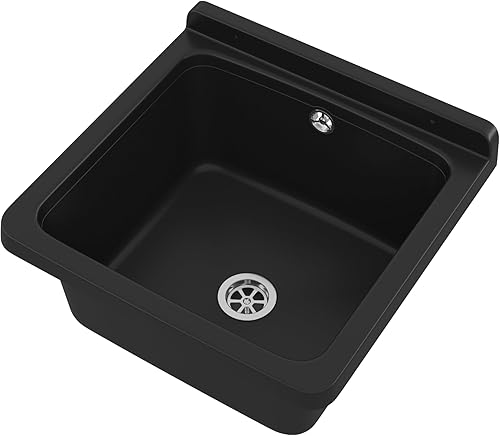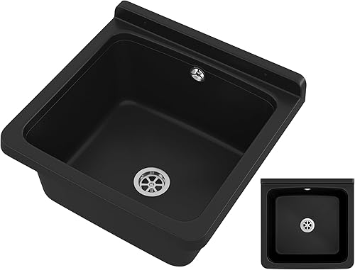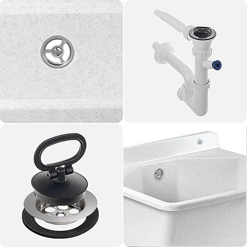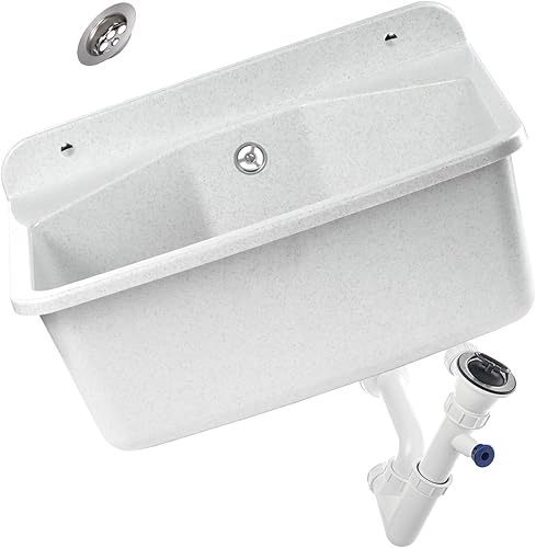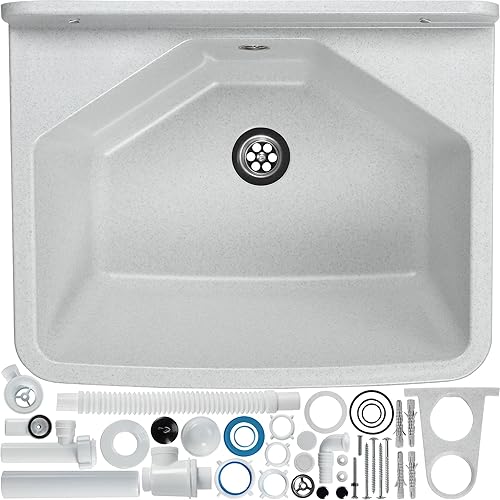 gospo Ausgussbecken mit Siphon, 46 x 37 x 20 cm, Waschbecken aus Kunststoff, Waschtrog für Garage, Keller, Waschküche, Werkstatt, Wandmontage, in Platte, Spülbecken inkl. Zubehör (weiß)