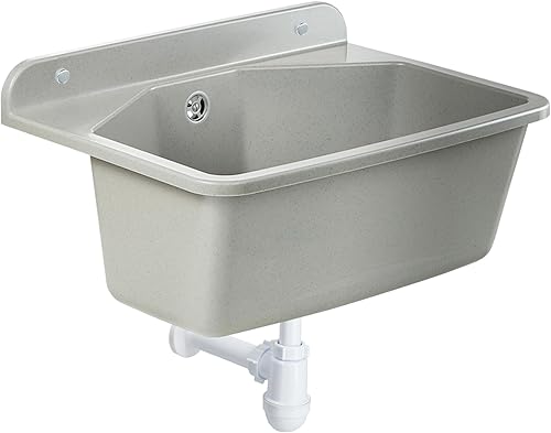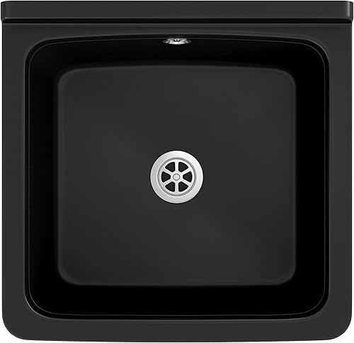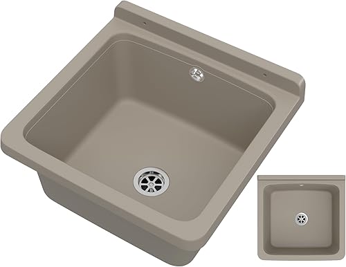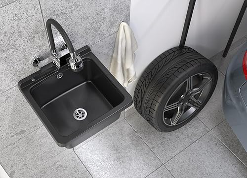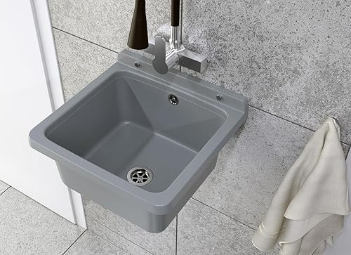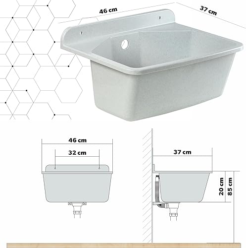 Granitan Ausgussbecken für Garage Keller Werkstatt und Waschküche - Universal Waschtrog mit Siphon - Waschbecken Wandmontage für Innen- und Außenaufstellung - 40x38x22,8 cm - Weiß