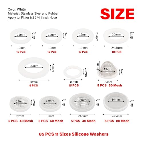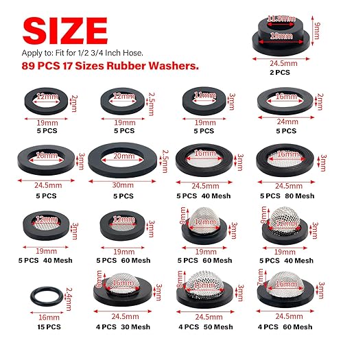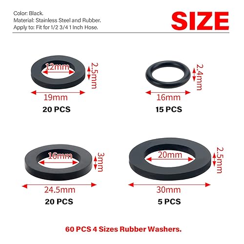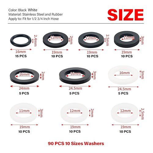 YIXISI 120 Stücke O-Ringe Dichtringe Set, Gummi Flache Unterlegscheibe, Gummi Schlauch Unterlegscheiben, für 1/2 3/4 1 Zoll Dusch Brausekopf Wasserhähne Schläuche Brauseschlauch