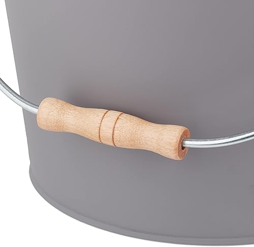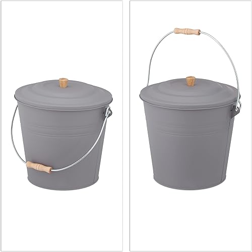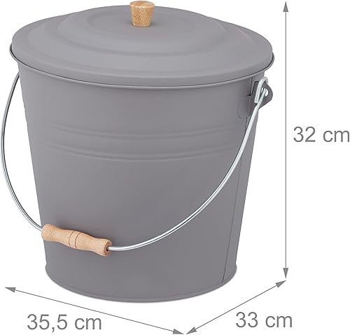 Relaxdays Ascheeimer mit Deckel, 12 Liter, Kamineimer, Stahl & Holz, Aschebehälter mit Henkel, Kamin, Ofen & Grill, grau
