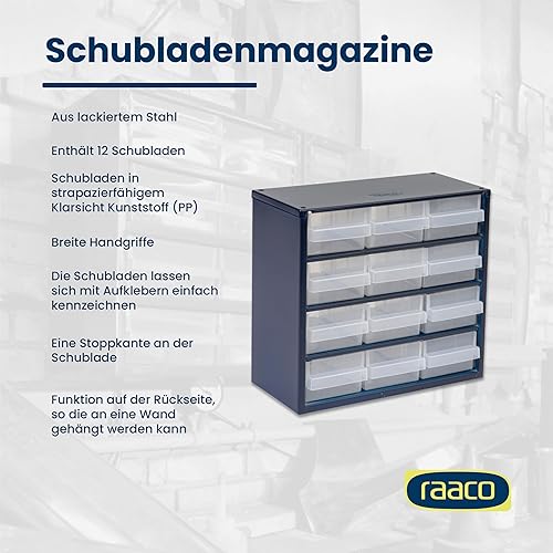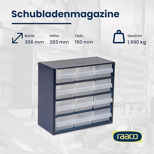 raaco Kleinteilemagazin C12-48 mit 48 Schubladen, Tragkraft 39.6 kg, 15 x 30.6 x 55.2 cm, geeignet für Wandmontage, Schraubenregal für Kleinteile für Werkstatt Ordnungssystem