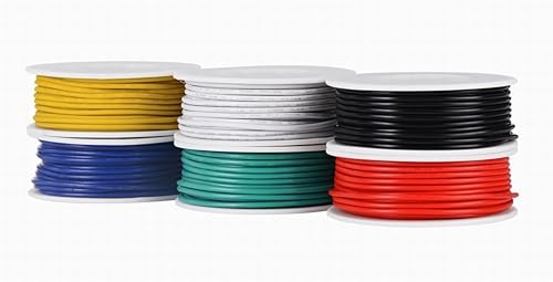 TUOFENG 22 AWG Elektronik kabel set verzinnter Kupferdraht Kit 0,32mm² Flexibler Litzen Silikon Leitungen Draht(6 verschiedene farbige 8 Meter Spulen)