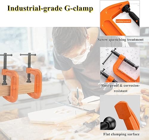 Yomotay C-Tischklemme, 2 Stück Universale Schwerlast Zwingen Klemmen & Spanner, Holzbearbeitung Befestigungsklammern Tischmontage Schraubklemme Edelstahl, Kieferöffnungen
