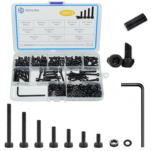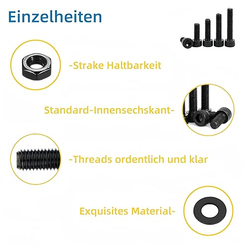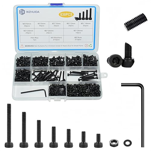 WZHUIDA 630 Stück M3 Schrauben Set, Schwarz Metrisch Zylinderkopfschrauben Innensechskant Schrauben Muttern und Unterlegscheiben Sortiment Set, Gewindemaschinen Sechskantschrauben
