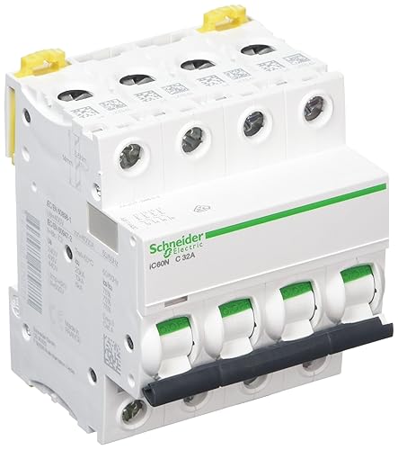 Schneider Electric A9F74432 IC60N Leitungsschutzschalter, Acti9, Krümmung C, 4P, 85 mm Höhe x 72 mm Breite x 78,5 mm Tiefe, 32 A Strom, 50/60 Hz, Weiß