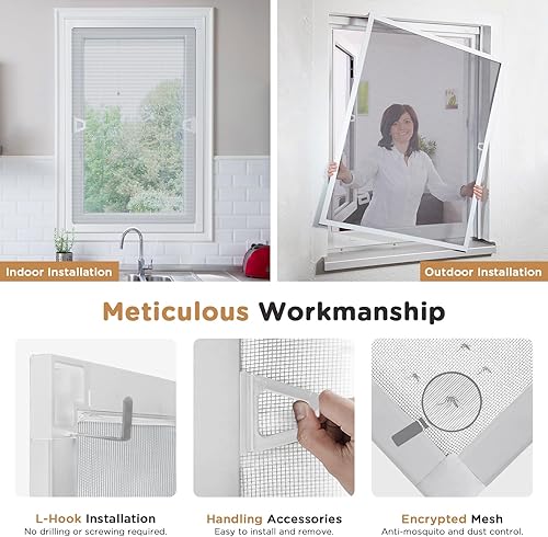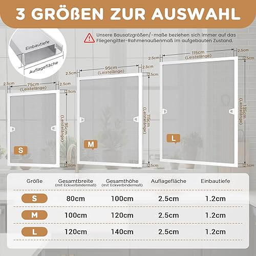 arvioo Fliegengitter Fenster, Insektenschutz Fenster für eine Insektenfreie Zone im Wohnbereich, Fliegengitter Spannrahmen ohne Bohren, Fiberglasgewebe & Alurahmen, Einbautiefe 12 mm (Weiß, 120x140cm)