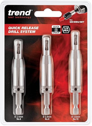 Trend Quick Release 3 Piece Drill Bit Guide Set, Schnellspanner mit 1/4 Zoll Sechskantschaft für den Einsatz in Schnellwechselbohrmaschinen, QR/DBG/SET