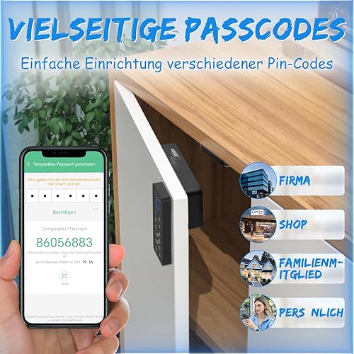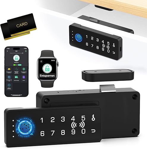 Eseesmart Schubladen Schloss mit Fingerabdruck, Smart RFID Fingerprint Möbelschloss mit Zahlencode APP, Tastatur Digitales Elektronisches Schlüsselloses Schubladenschloss für Schrank Spind Möbel