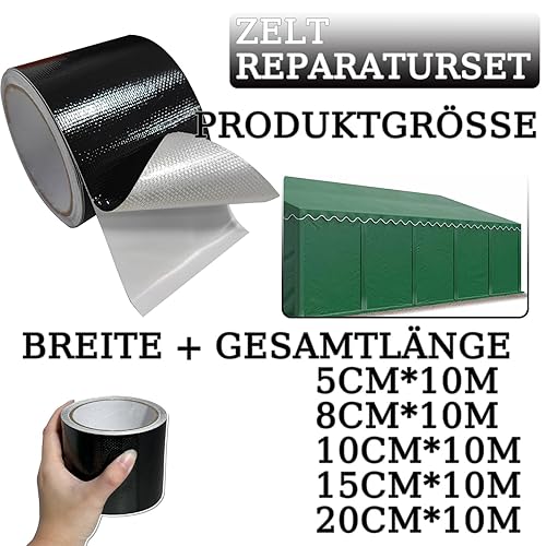 Zelt Reparaturset Schwarz - Kleber für lkw Plane Schutz Flicken für Abdeckplane & Sonnenschirm,Bootsplane,Zeltunterlage Planen,Reparaturband,Markisen Reparatur Klebeband (Schwarz, 5cm*10m)