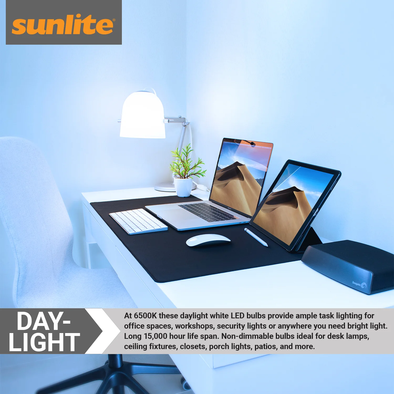 3 Pack Sunlite A19 LED Bulbs, 9 Watt (60 Watt Equivalent), 800 Lumens, Medium (E26) Base, 6500K Daylight, UL Listed
