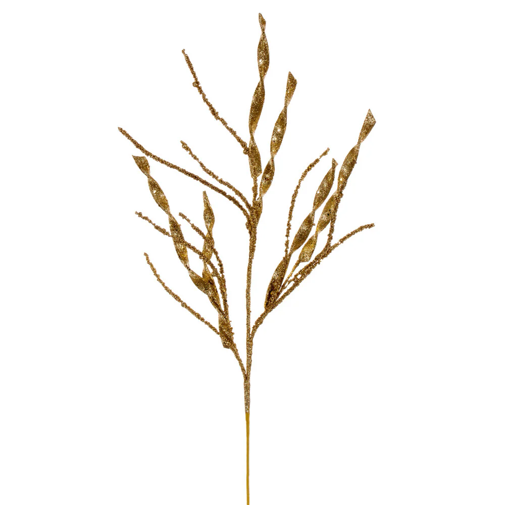 Vickerman 34" Gold Wavy and Spiral Glitter Spray 6 per bag.