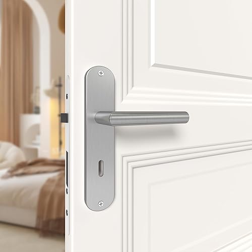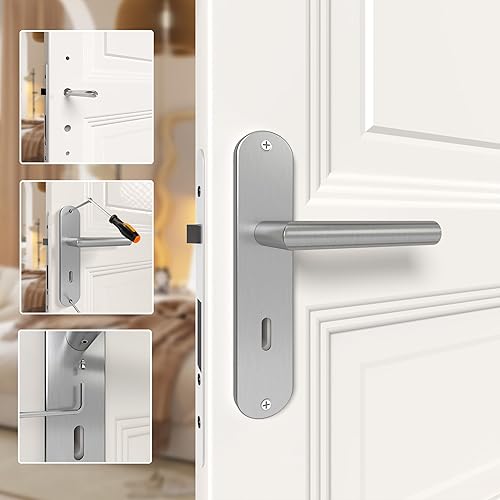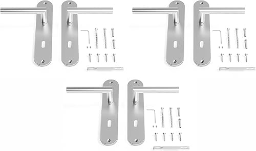 AwmnSrman Türgriffe Innentüren Türklinke Türbeschlag Drückergarnitur Zimmertür Garnitur 72MM-BB-Buntbart Set 3er-Set Moderne Edelstahl 6 Türklinken & 6 Langschilder 240 * 50 mm