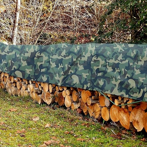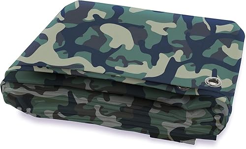 KARAT Camouflage Abdeckplane 100g/m² - Regenplane für Outdoor, Camping, Zeltunterlage, Bauplane, Holzabdeckplane, Gartenplane, Schutzplane, Gewebeplane mit Ösen (4 x 6 m)