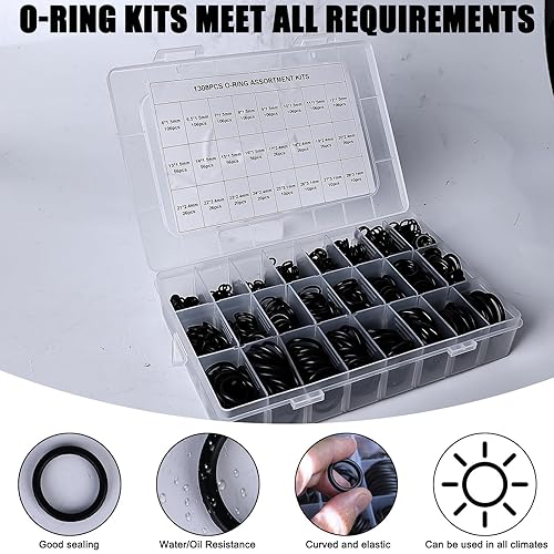 1308 Stück O Ring Sortiment Set: 24 Größen Dichtungsringe Set O-Ringe Dichtungen mit 4 Pick und Hook Kit Nitrilkautschuk Gummi O Ring für Reparatur Schläuchen, Wasserhähnen, Automobilen