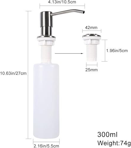 lyrlody Seifenspender für Küchenspüle, 300 Ml Integrierter Seifenspender für Küche oder Badezimmer Eingebauter Reinigungsmittelspender für Küchenspüle